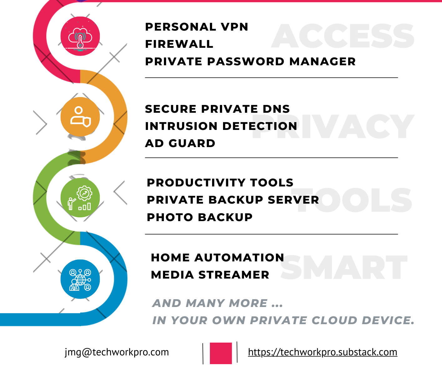 One of the additional benefits of our device and app is the ability to run private cloud apps. This means that families can use apps such as Password managers, family photo and video sharing, digital document management, or even a private social network, that are hosted on-premises rather than on the public cloud such as Apple or Google. With these private cloud apps, families can enjoy a more personalized and secure online experience, without worrying about their data being shared with third parties.